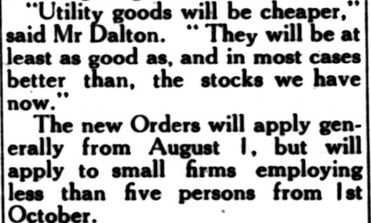 The Kirriemuir Free Press of 9 July 1942 sets out a nice explanation to the public on how the scheme would work. Hugh Dalton, as President of the Board of Trade is a name that comes up again and again during this period.