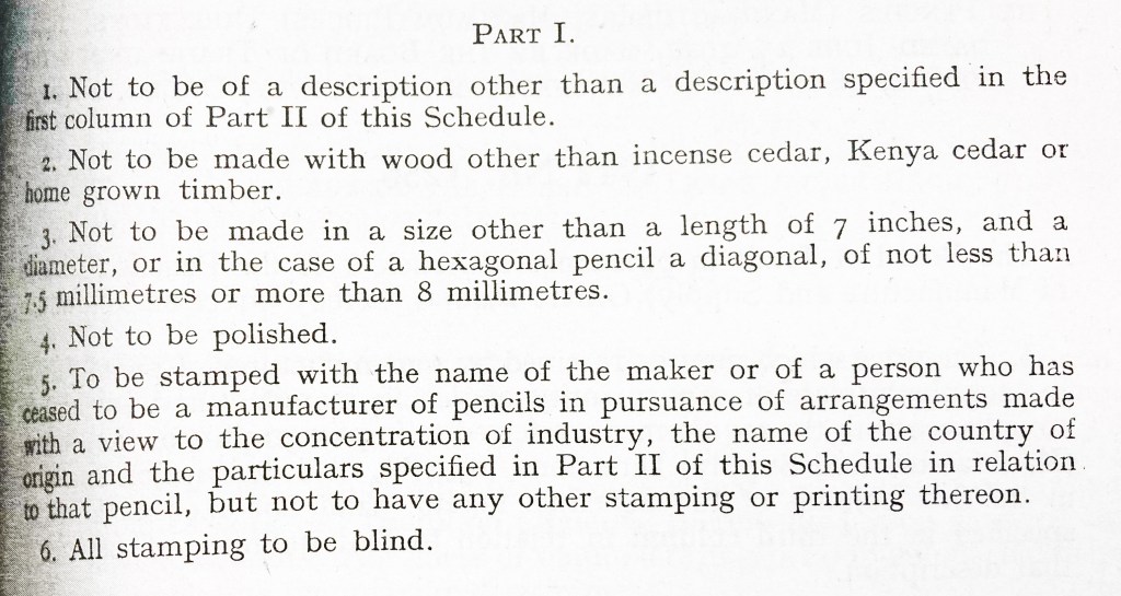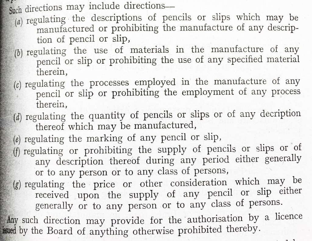 The Pencils (Control of Manufacture and Supply) Order, 1942, set strict rules on what pencil manufacturers could produce: