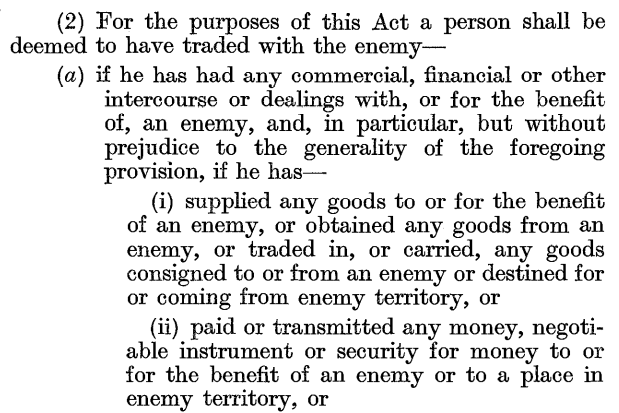 I’ve set out a couple of interesting sections from the Trading with the Enemy Act 1939 below to provide some context: