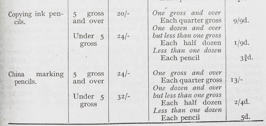 The Pencils (Maximum Prices) Order 1944 contains some useful information (I appreciate that there is a lot of reading in many of these extracts, but lets stick with it!):
