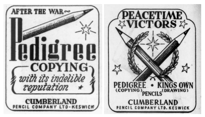 The Cumberland advert below left was released two weeks before the end of WWII. The copy has plenty of optimism and also refers to the return of branded pencils, in this case the famous ‘King’s Own’ range:
