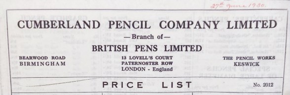 Over the summer I took a trip to the Lake District. As you would imagine, I spent an afternoon in Keswick, including visiting the Pencil Museum. I’ll have another few posts on that at some point, but in advance of that, I spotted a 1930s catalogue in a display.