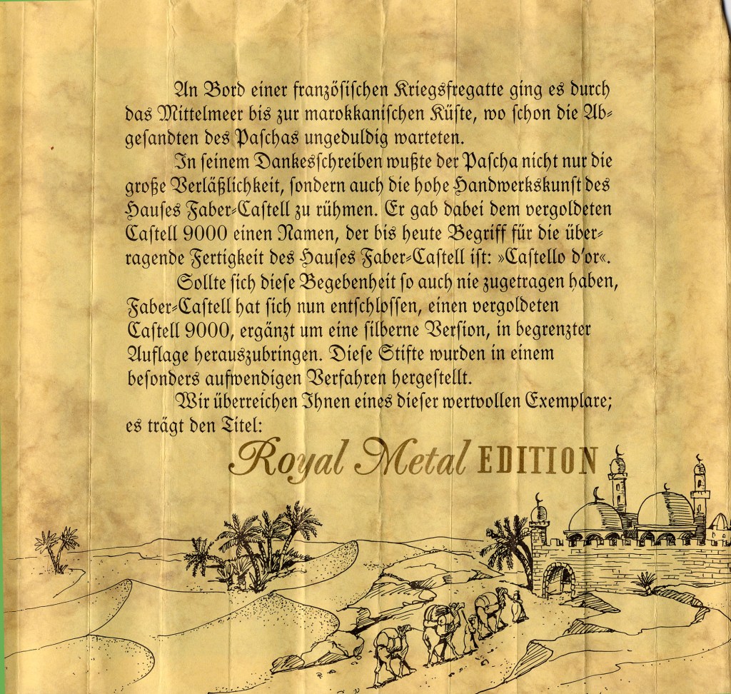According to the kind people at Faber, the Royal Metal Edition was released in 1988 and sold in gold and silver plated versions.