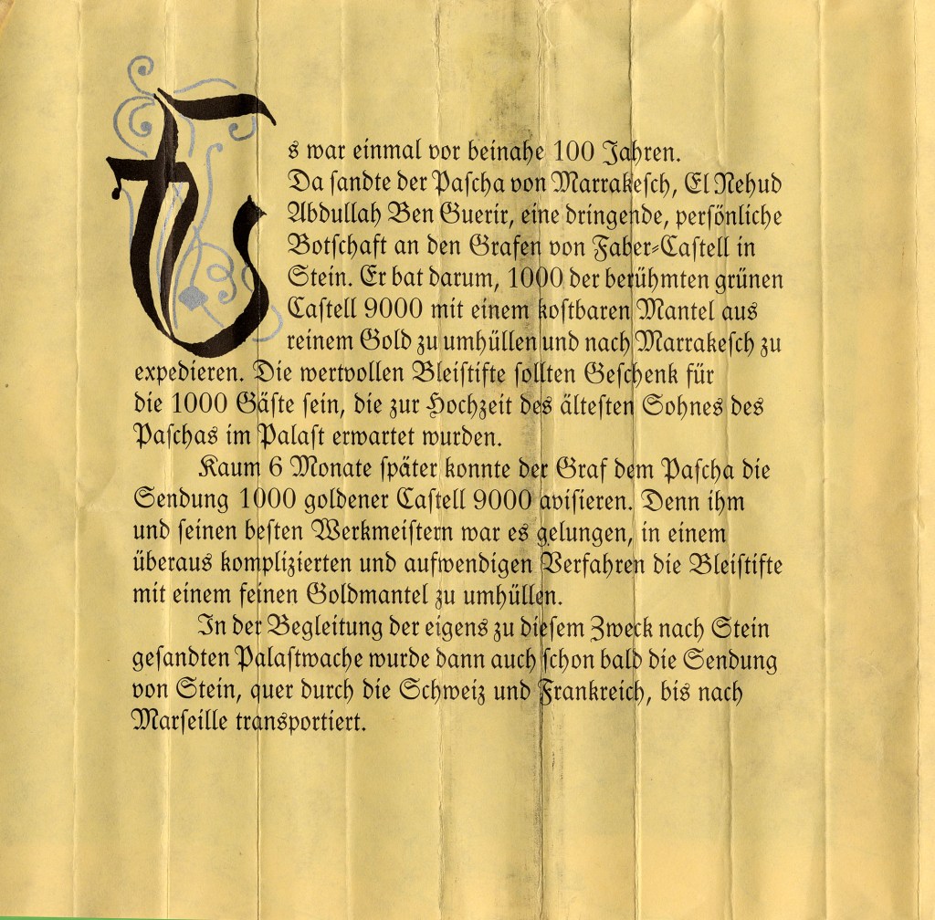 Turning next to the scroll that comes with the pencil. It’s a neat extra and really adds to the special edition package. I remember reading the story and thinking it was pretty interesting and fun, but realistically, it did sound a little far-fetched, even for Faber.
