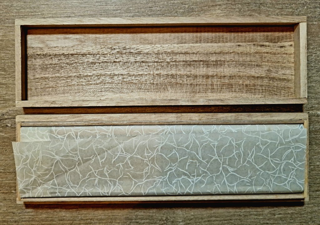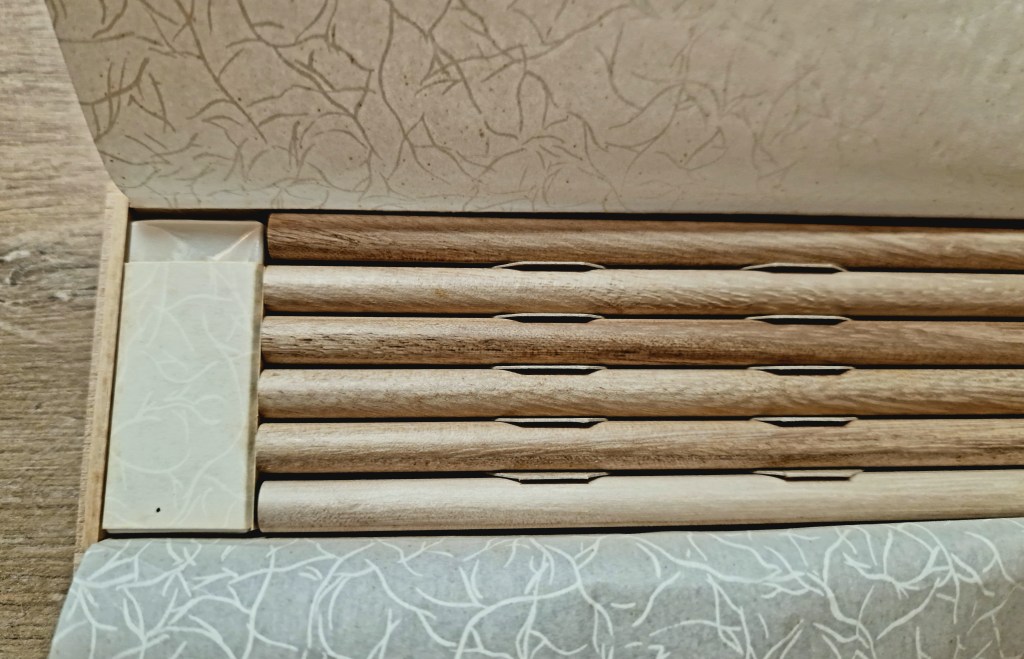 Under the wrapping sits a dozen Mitsubishi pencils manufactured from the same Paulownia wood as the box. The eraser cover also mirrors the same design as the wrapping paper and the slip-case