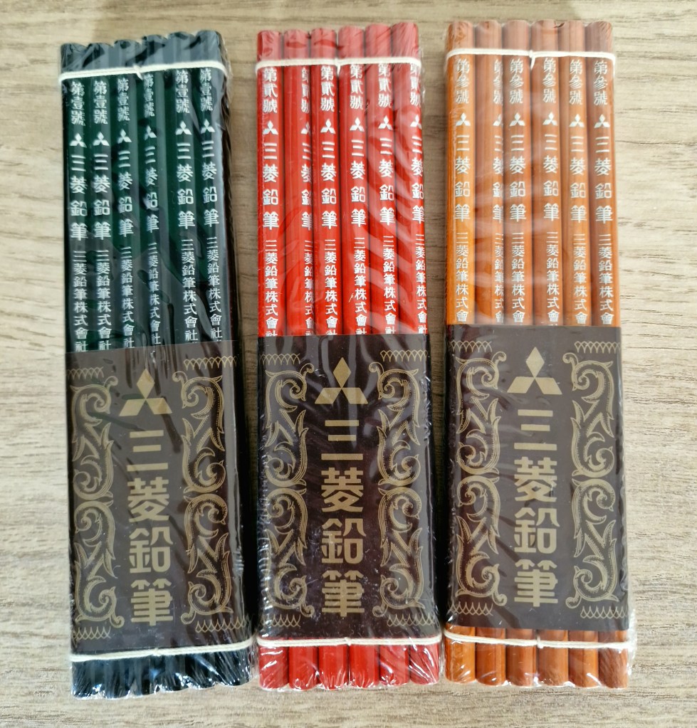 Next up, we have three variations of essentially the same pencil. For the 100 year anniversary, Mitsubishi recreated three of the pencils that made them a success. My understanding was that these were originally produced for government office use.