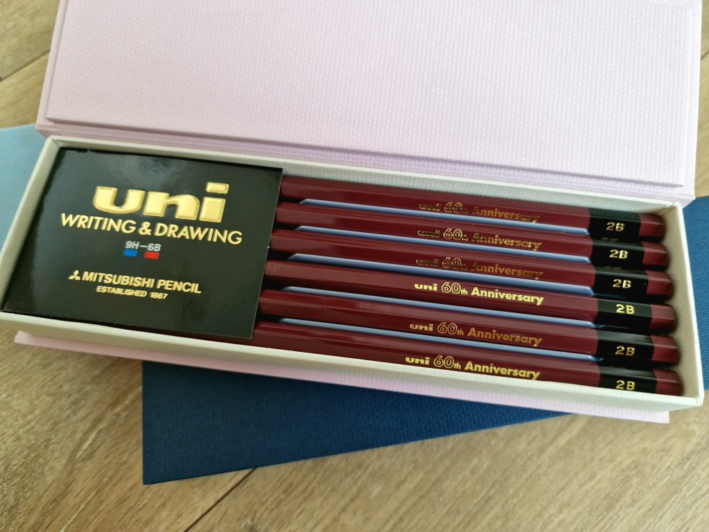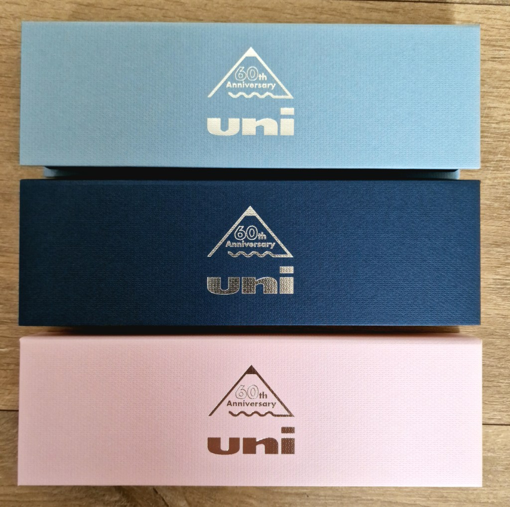 Not too dissimilar to the 100 year anniversary pencils, the uni 60th anniversary pencils have the anniversary stamping on the pencils. All three boxes have the same pencils inside.