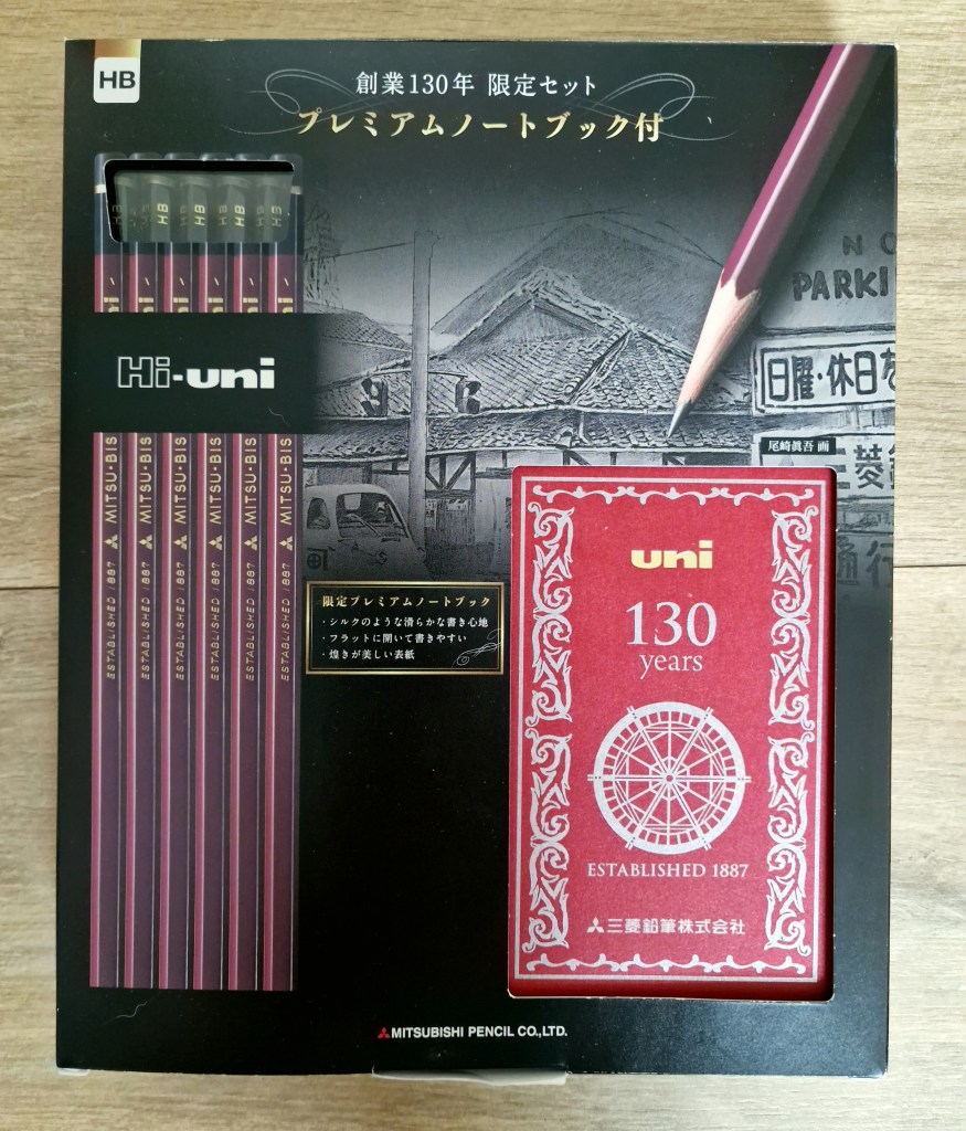 This time, Mitsubishi went with the hi-uni pencils. Rather unfortunately they didn’t add any 130 years stamping. You could get them stamped with your name on them, but I didn’t bother.