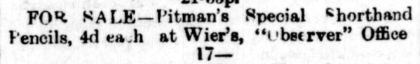 The only advertisement I could find for the Pitman’s branded pencil (manufactured, as we know, by Wolff), was in the Ballymena Observer of Friday 02 January 1925. The date appears to line up with it’s recent release.
